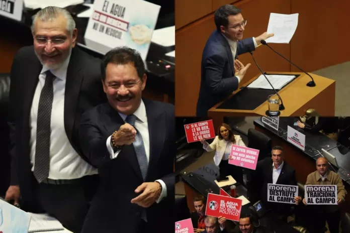 Menos de 12 horas después que fue turnada por la Cámara de Diputados, la minuta se avaló con 85 votos a favor y 36 en contra, en medio de una confrontación entre el bloque de la 4T y la oposición. Los guindas defendieron la nueva norma frente a las “mentiras y calumnias de senadores panistas y priístas” que sostuvieron que le quitarán el agua a los productores agrícolas.
