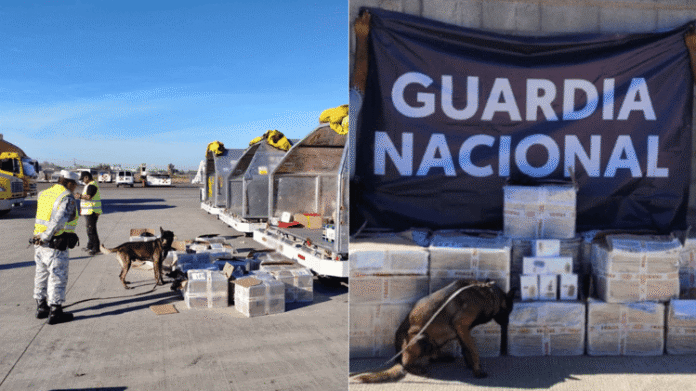 El aseguramiento se llevó a cabo como parte de las acciones permanentes de inspección y prevención del delito que se realizan en la terminal aérea. El hallazgo se logró gracias a la intervención de un binomio canino especializado en detección de drogas y sustancias prohibidas, que marcó positivo al revisar 22 cajas enviadas a través del servicio de mensajería.