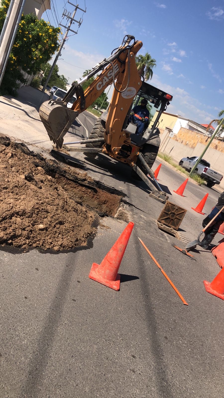 El tramo afectado se localiza en las calles Gilberto Escoboza y Paseo de La Paloma, donde se encuentra desplegado el equipo de cuadrillas y maquinaria especializada para realizar las labores necesarias de reparación.
