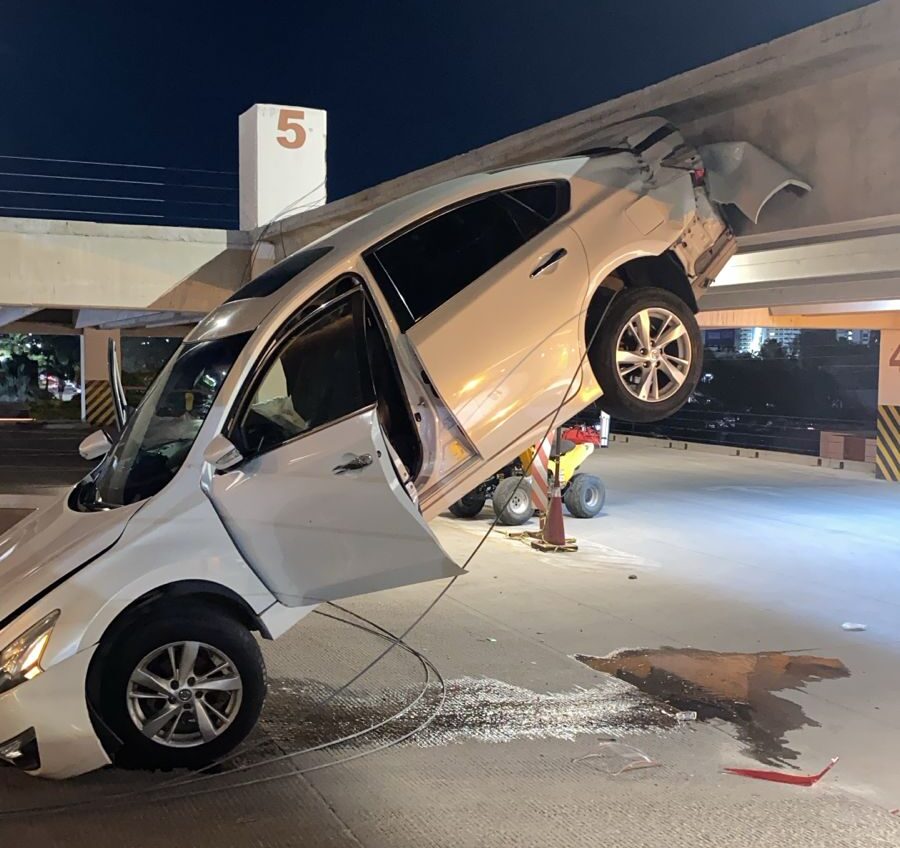 Eran cerca de las 8:00 de la noche cuando se reportó al 9-1-1 el incidente en el estacionamiento y acudió el Departamento de Bomberos, localizando la unidad siniestrada que había caído desde el quinto al cuarto piso.