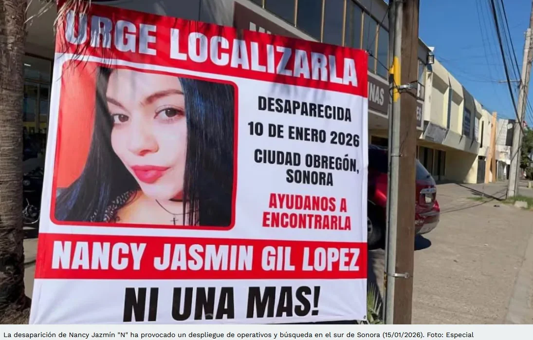 Tras las diligencias iniciales y la identificación correspondiente, se estableció que la persona corresponde a Nancy Yazmín Gil López, quien contaba con reporte de privación ilegal de la libertad desde el pasado 10 de enero de 2026.
