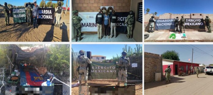 De forma coordinada, elementos del Ejército Mexicano, la Guardia Nacional, la Secretaría de Marina, la Fiscalía General de la República (FGR), la Policía Estatal de Seguridad Pública (PESP), y la Agencia Ministerial de Investigación Criminal (AMIC) ejecutaron cuatro órdenes de aprehensión, una de cateo, aseguraron cuatro inmuebles, 11 vehículos y 28 motocicletas.