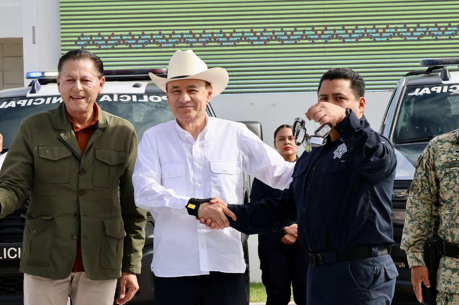 Durante la entrega de las patrullas, el mandatario estatal destacó que, gracias a la coordinación interinstitucional entre corporaciones de los tres órdenes de gobierno, el municipio ha logrado una reducción del 95 por ciento en homicidios dolosos. Las 14 unidades, adquiridas con una inversión de 12 millones 398 mil 684.44 pesos, permitirán reforzar el estado de fuerza e incrementar la presencia policial en las colonias, brindando mayor tranquilidad a las familias de este municipio fronterizo.