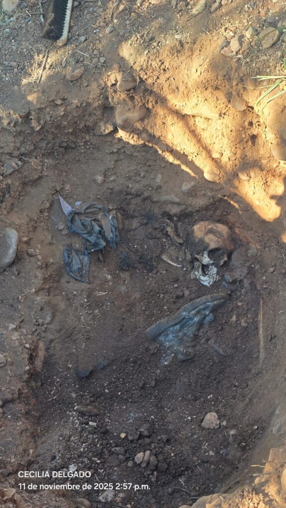 En la fosa 4, se hallaron restos óseos calcinados, de acuerdo con los especialistas, en el sitio se recuperó una columna vertebral con signos de exposición a altas temperaturas.