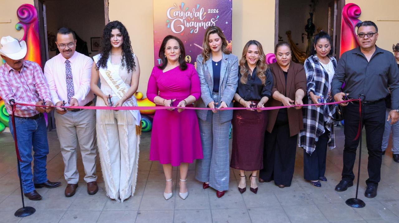 Guaymas, Sonora, 10 de febrero de 2026. Como parte de las actividades previas al Carnaval Guaymas 2026 “El pueblo está de fiesta”, fue inaugurada la exposición Arte objeto: bastones carnestolendos.