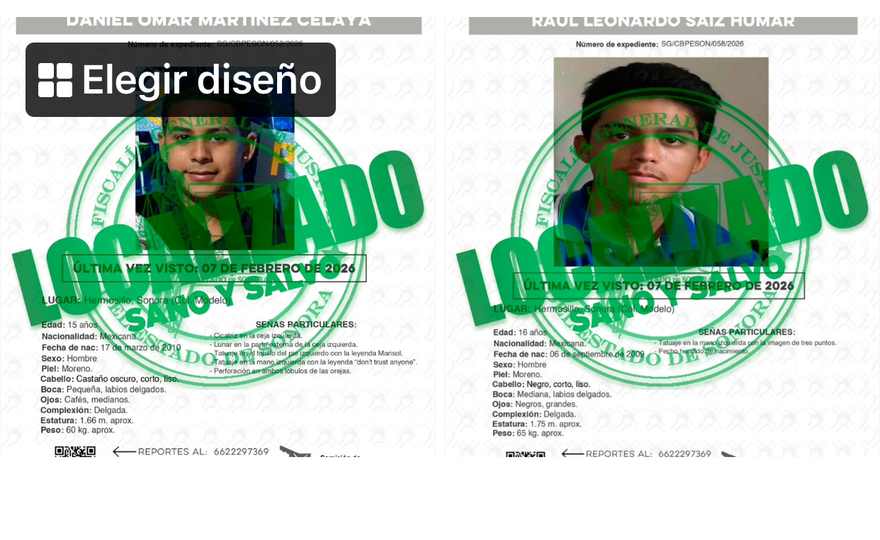 Hermosillo, Sonora, 17 de febrero de 2026.- La Fiscalía General de Justicia del Estado de Sonora (FGJES), a través de la Agencia Ministerial de Investigación Criminal (AMIC), informa que fueron localizados con vida dos jóvenes que contaban con reporte y denuncia por persona desaparecida en Hermosillo.