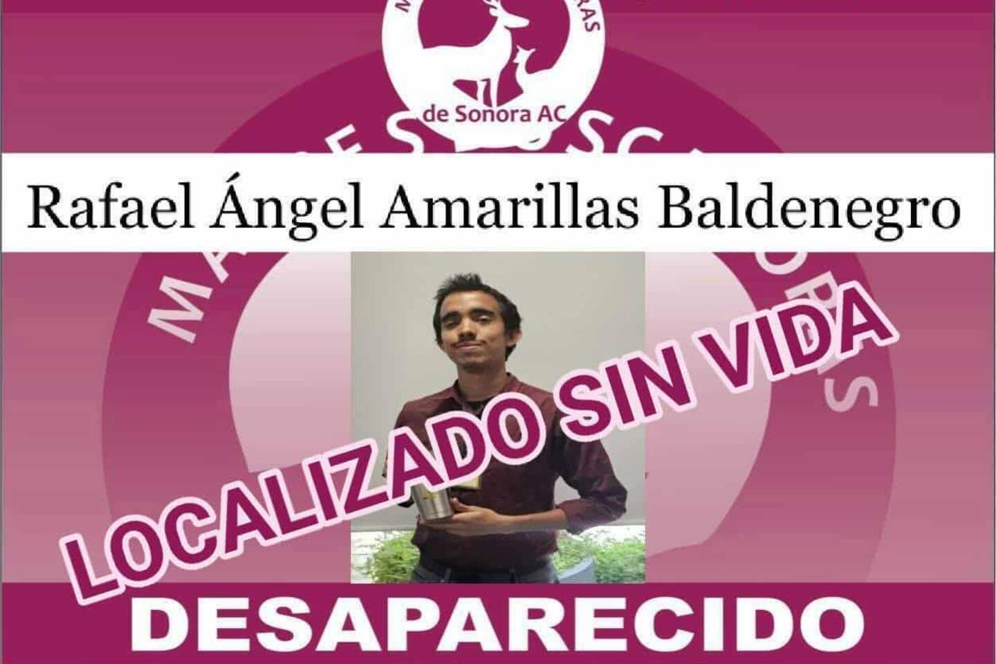 Hermosillo — El cuerpo sin vida localizado en el cerro de la cementera en días atrás, pertenece al joven Rafael Amarillas Baldenegro, informó el colectivo Madres Buscadoras de Sonora.
