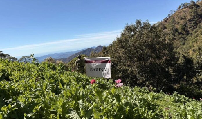 San Blas, Nayarit.- La Secretaría de Marina, a través de la Armada de México, por conducto de la Décima Zona Naval, informa que, en días pasados personal naval localizó y erradico tres plantíos de amapola en Pueblo Nuevo El Alto, estado de Nayarit.