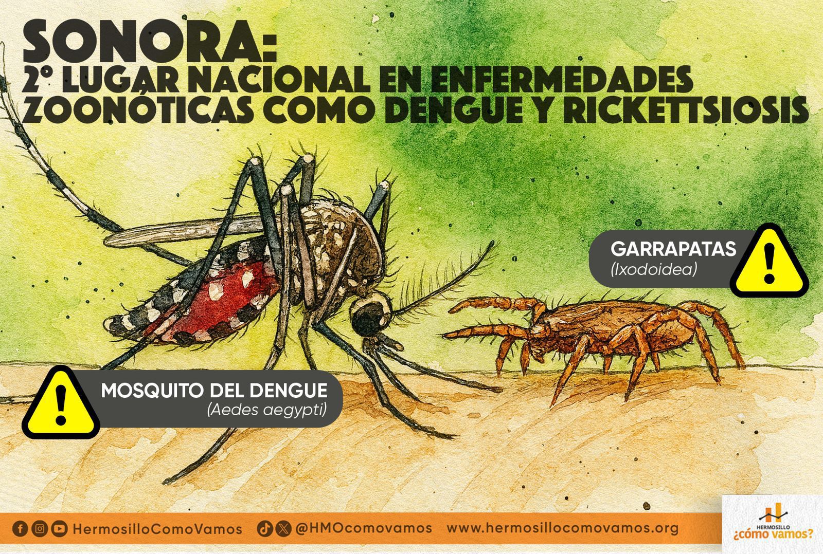 Hermosillo, Sonora.– Sonora cerró octubre de 2025 con un repunte significativo en enfermedades zoonóticas, posicionándose como la segunda entidad del país con más casos nuevos de dengue y rickettsiosis, de acuerdo con los datos epidemiológicos más recientes difundidos por el Sistema Nacional de Vigilancia Epidemiológica.