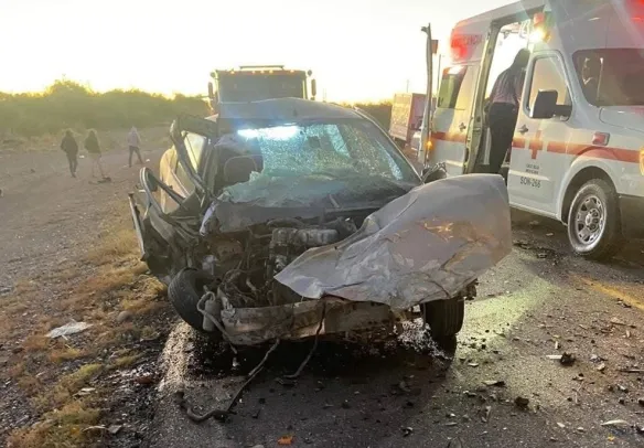 Un accidente vehicular entre un sedán y una van de transporte de personal ocurrió este domingo 19 de octubre, en la carretera costera del municipio de Caborca, dejando un saldo de una persona fallecida y ocho lesionados.